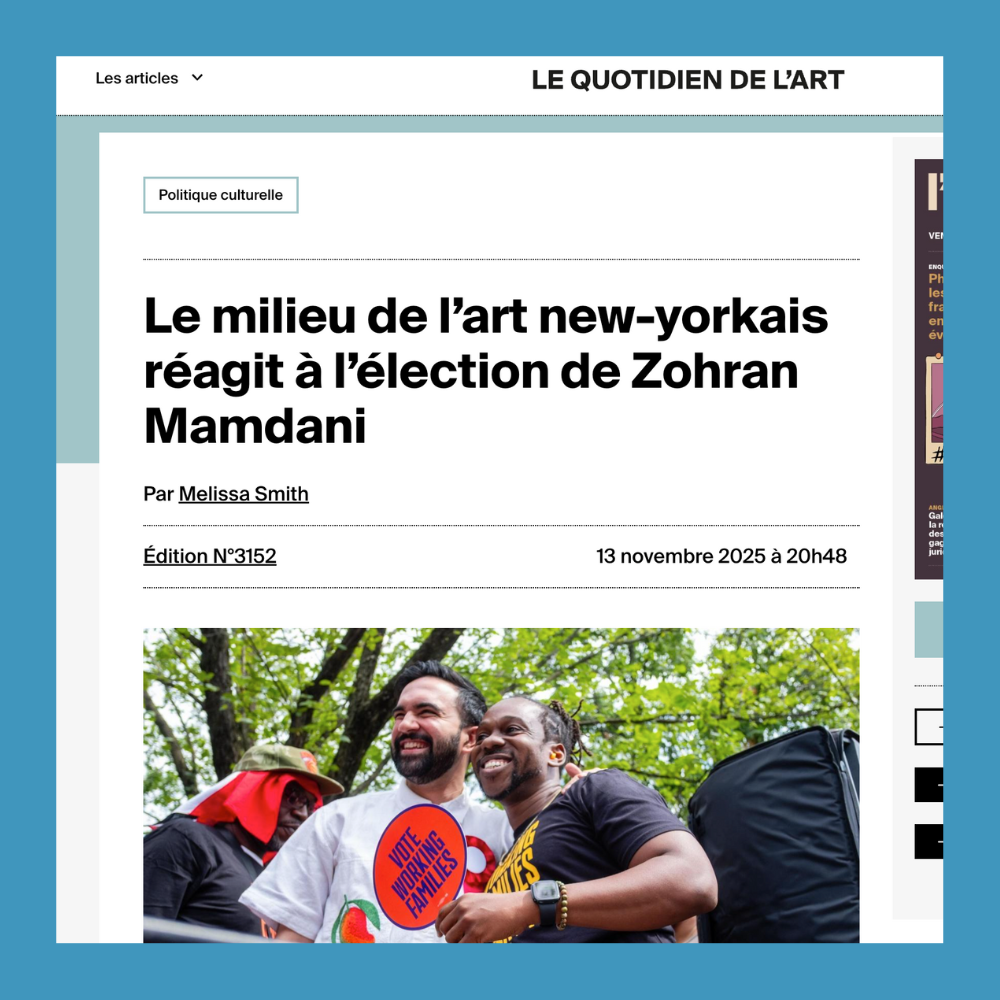 Le milieu de l’art new-yorkais réagit à l’élection de Zohran Mamdani | The New York art world reacts to the election of Zohran Mamdani Nov 14 Written By Clemente Center Read the full article in Le Quotiden De L’Art by Melissa Smith! Read Article Here! Clemente Center